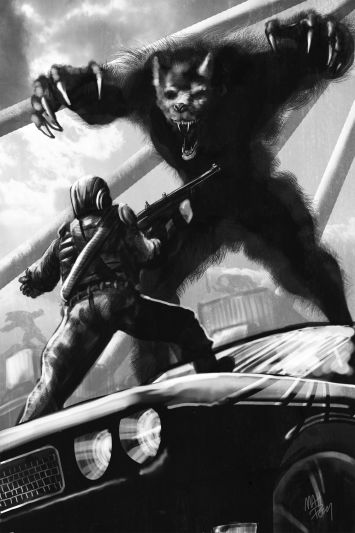 Shown is one of the An-Ki attacking a trooper from the TTDF on a bridge leading into Troy.