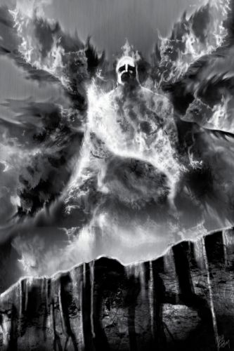 Shown is the High Avatar Enki, standing at the edge of the Abyss sorrowing over the unknown fate of Erishkegal.